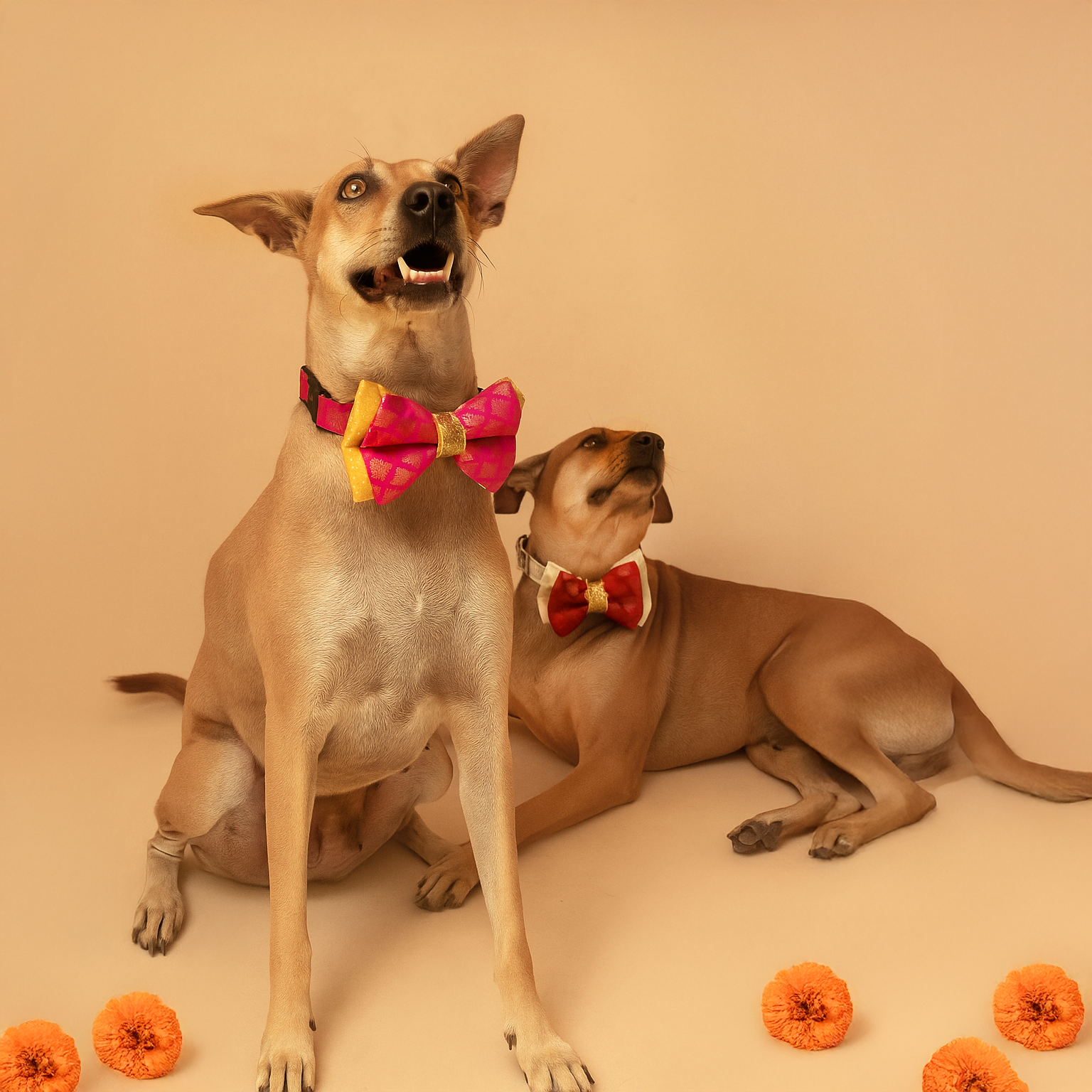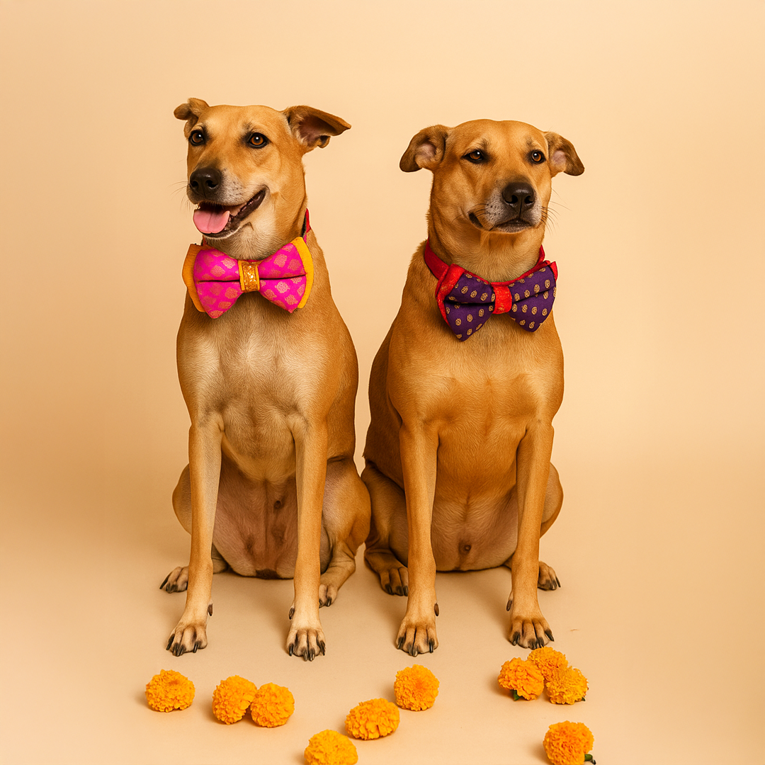 Festive collection that captures the vibrance of the festive season around! Radiant, rich and colouful, our festive ensembles are curated keeping in mind our beloved pet's comfort. Bow ties are adjustable, comes with secure lock buckle and D ring to attach leash to it. Choose amongst embroidered, mirrorwork, brocade, jacquard and georgette bow ties as per your style. Size : Size - S(10-16 inches) Suitable for small dog breeds such as shitzu, lhasa paso, maltese, Dachshund, chihuahua and similar breeds. Size - M-L(15-22 inches) Suitable for Pug, Beagle, Charles spaniel, boxer, Dalmatian, poms/spitz and similar breeds. Size - XL(18-26 inches) Suitable for labrador, golden retriever, huskies, german shepherd and similar.Kindly measure your dog to avoid any misfit