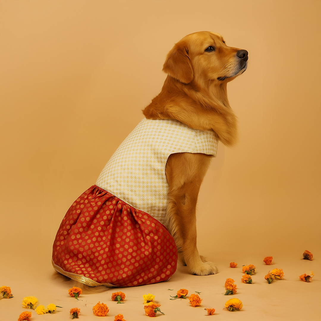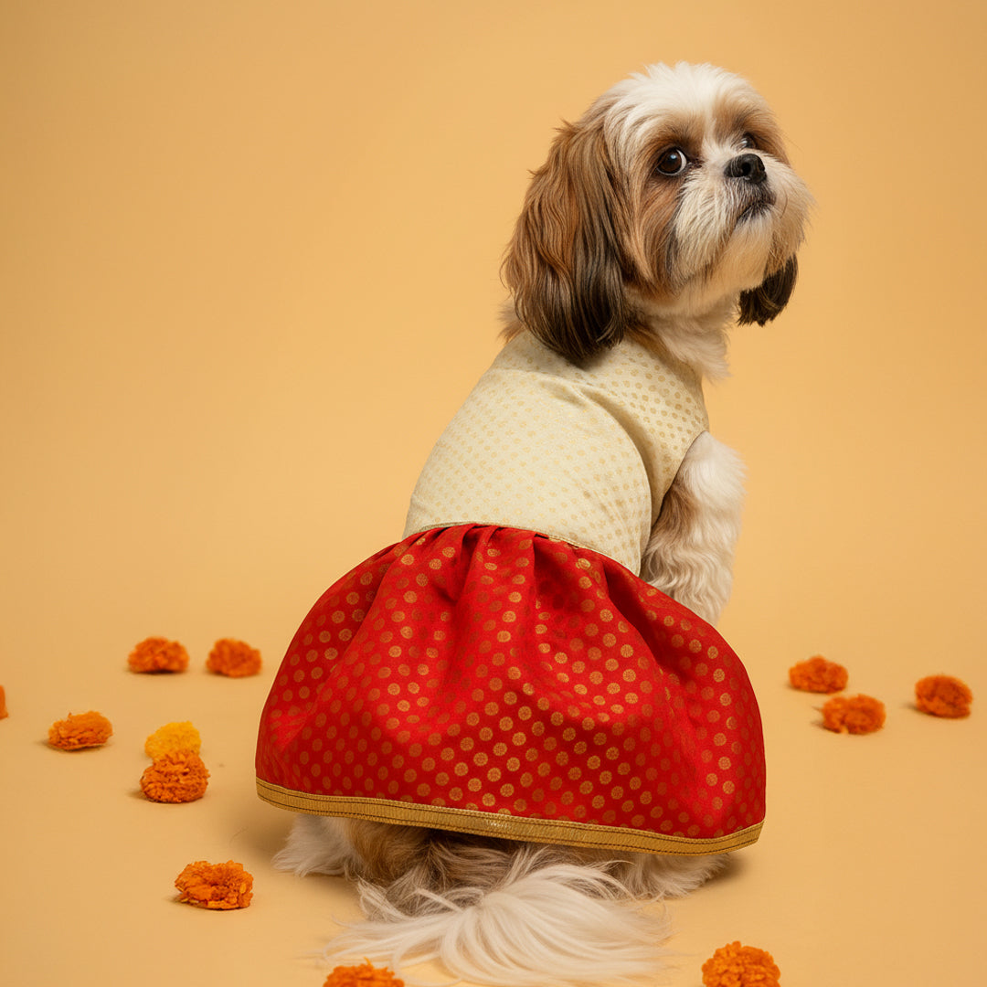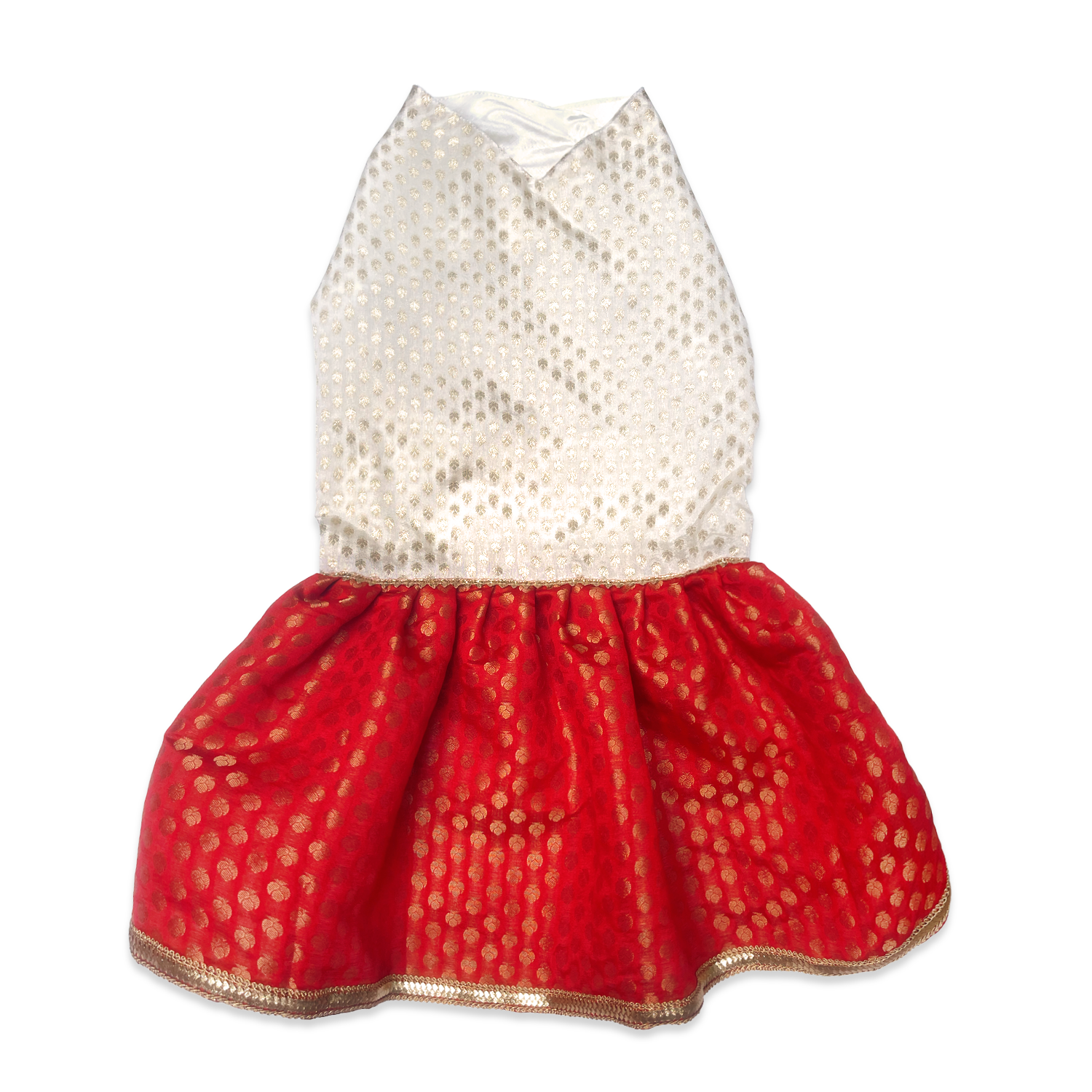 Shubhotsav Brocade Silk Dog Dress - Shubhrata (White/Red)