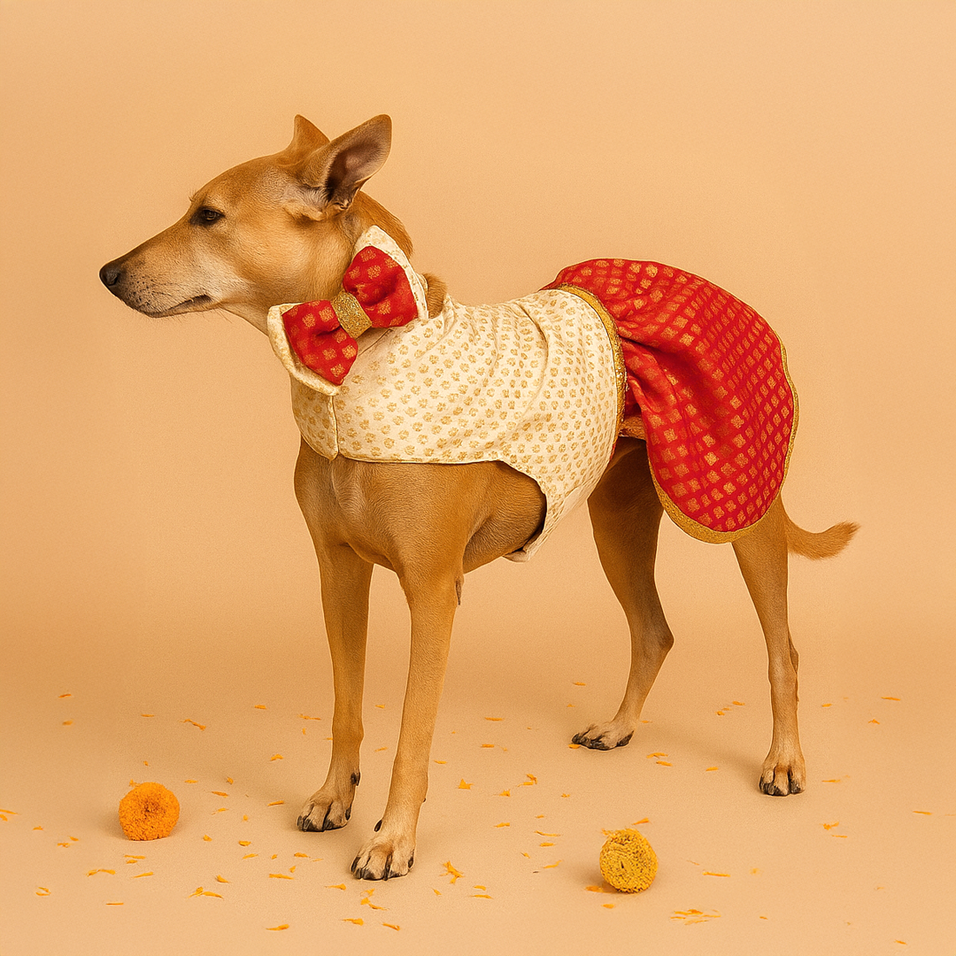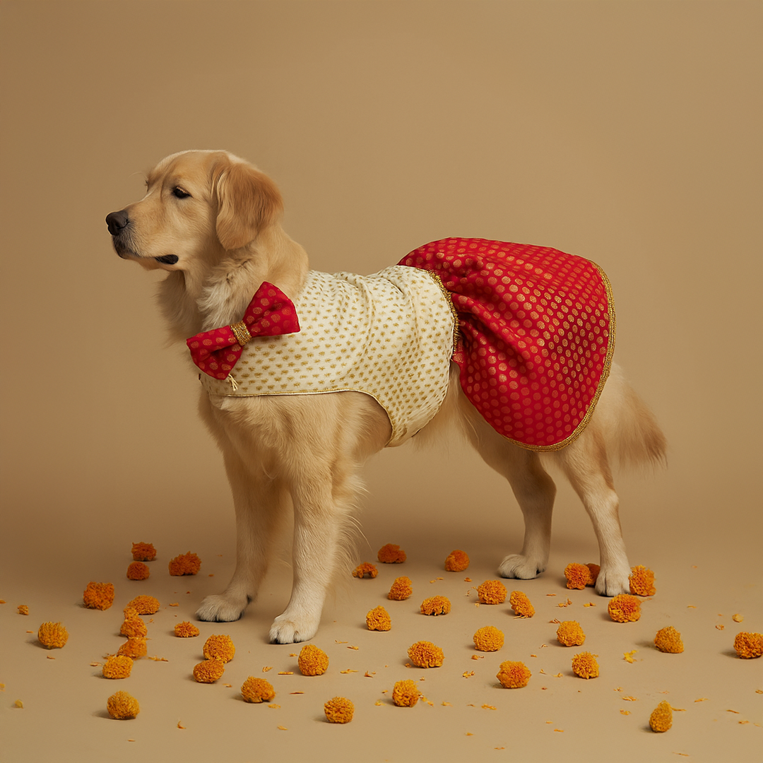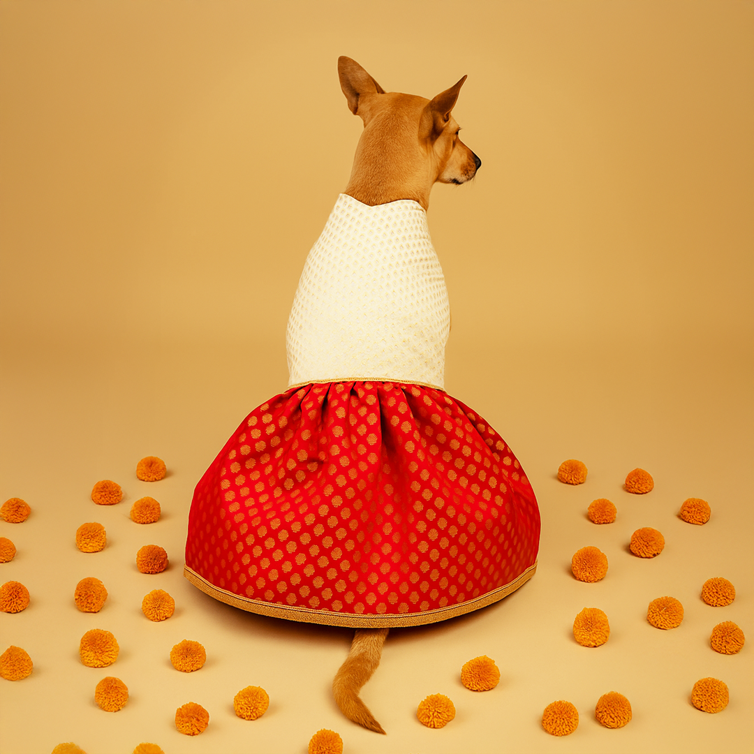 Shubhotsav Brocade Silk Dog Dress - Shubhrata (White/Red)