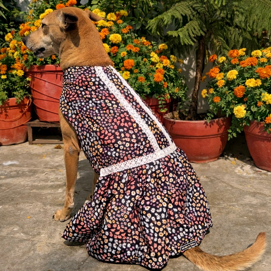 Beautiful Spring inspired dog dress. Super comfortable dog dress for your pooches! Made of fine cotton fabric and extremely comfortable to wear all day long with all the frills and flounces.