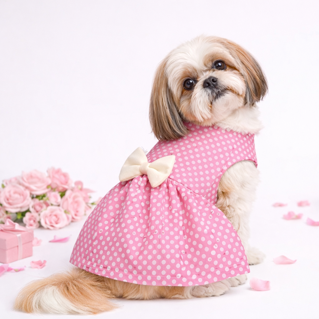 Home Dog Clothes Retro Polka Dog Dress - Pink