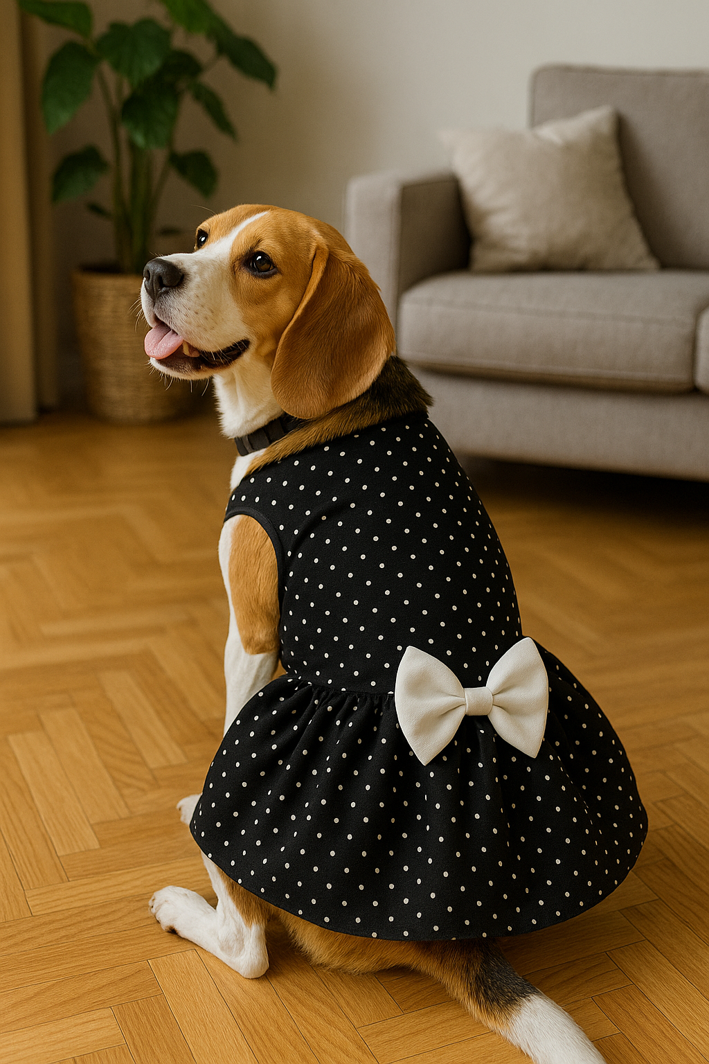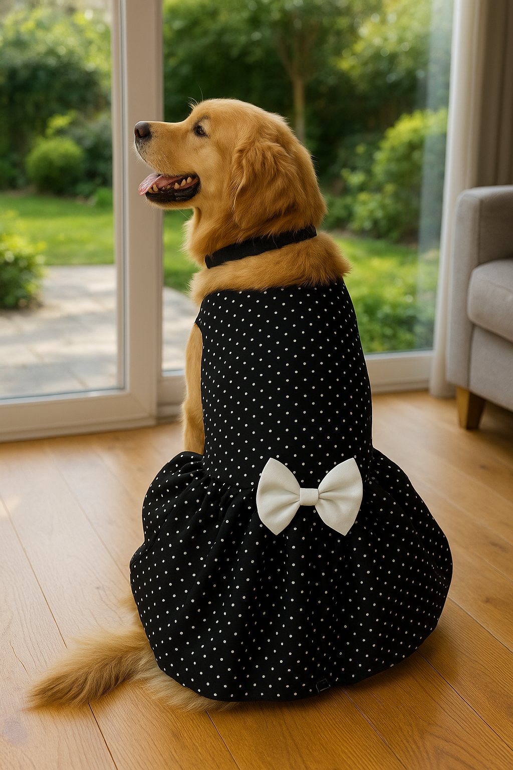 Retro Polka Dog Dress - Black thatdogintuxedo