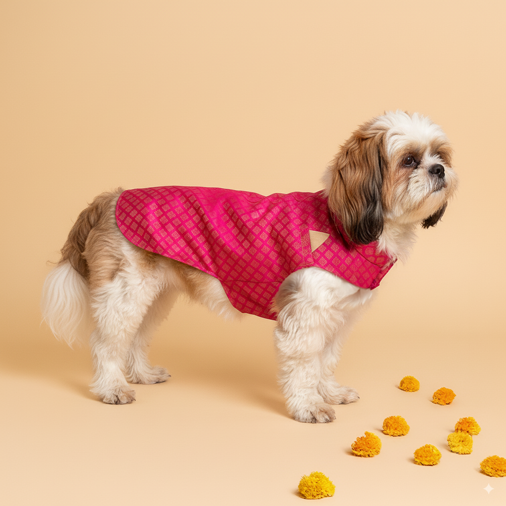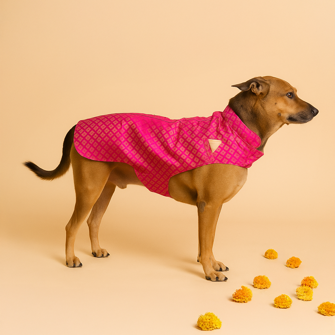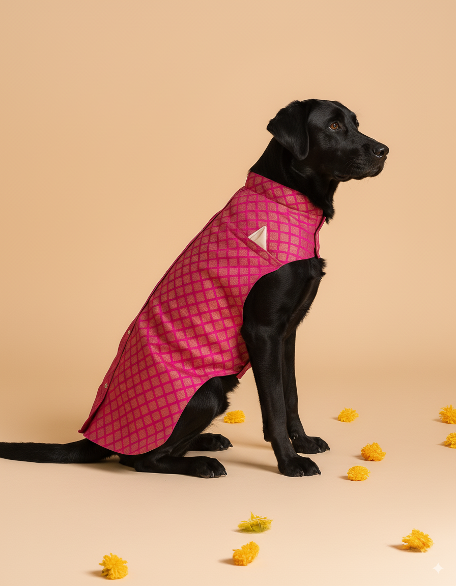 Home Gulab Brocade Festive Dog Sherwani - Pink