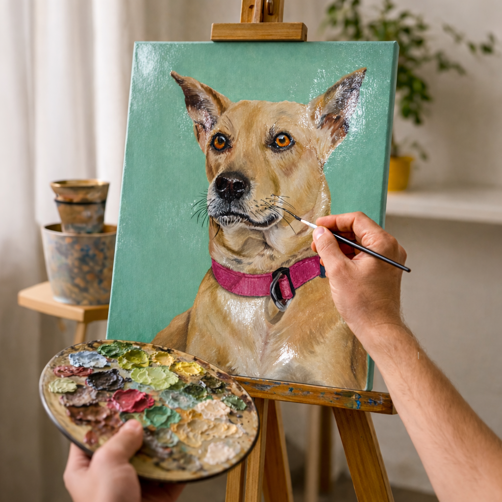 Custom Hand-Painted Pet Portrait (Oil on Canvas) – 12x16 Inch