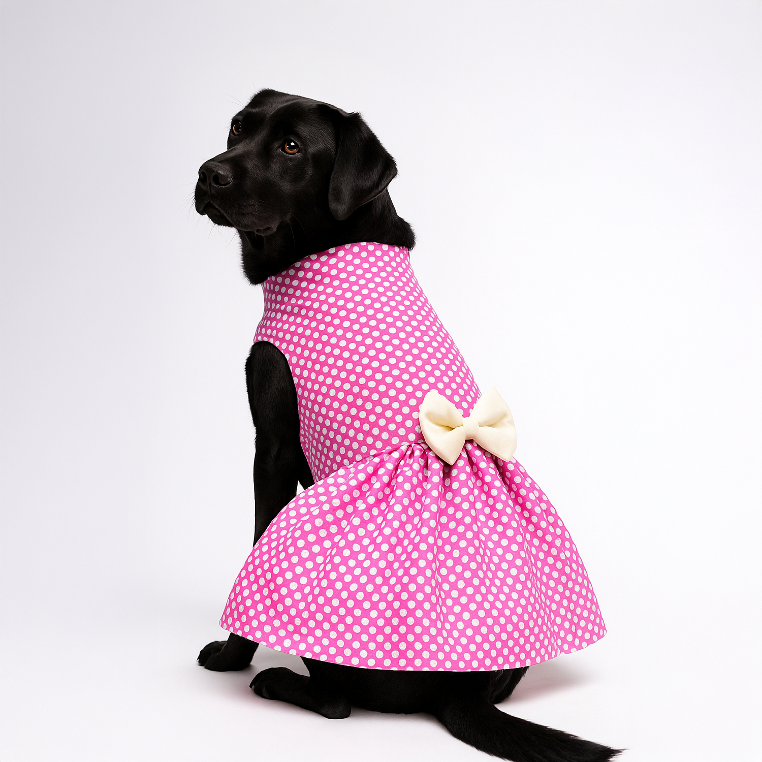Retro Polka Dog Dress - Pink thatdogintuxedo